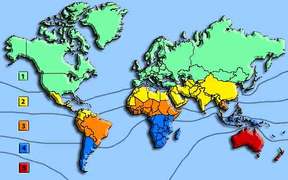 die Geräte für bestimmte Weltzonen